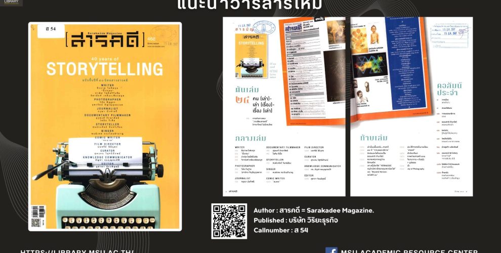 Author : สารคดี = Sarakadee Magazine. Published : บริษัท วิริยะธุรกิจ Callnumber : ส 54 ปีที่ 40 ฉบับที่ 469 (เมษายน 2567)
