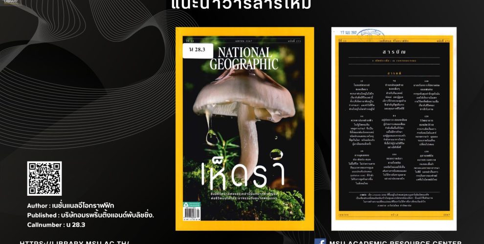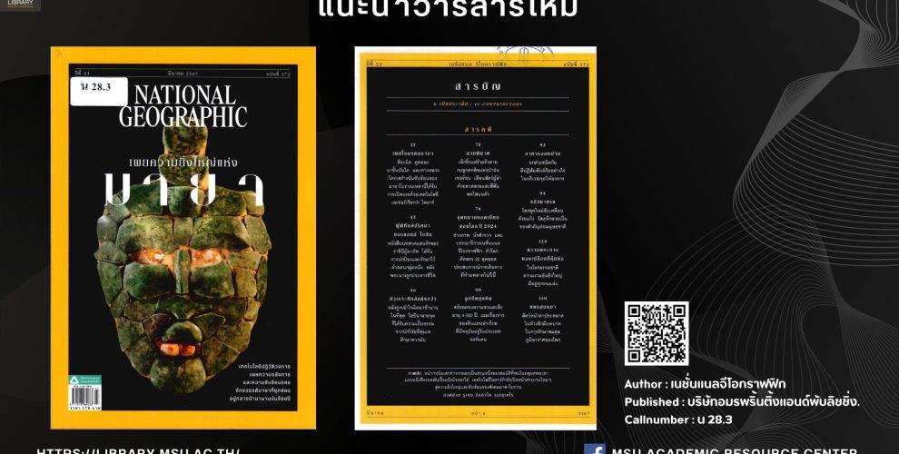 Author : เนชั่นแนลจีโอกราฟฟิก Published : บริษัทอมรพริ้นติ้งแอนด์พับลิชชิ่ง. Call number : น 28.3 ปีที่ 23 ฉบับที่ 273 (เมษายน 2567)
