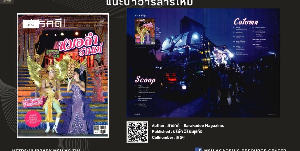 แนะนำวารสารใหม่ 23/05/2567Author : สารคดี = Sarakadee Magazine.Published : บริษัท วิริยะธุรกิจCallnumber : ส 54ปีที่ 40 ฉบับที่ 468 (มีนาคม 2567)Link : https://opac.msu.ac.th/bibitem?bibid=b00256241